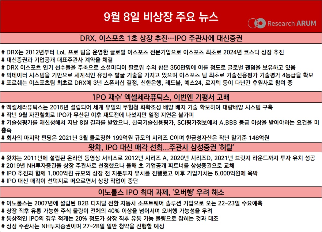 제목 2022년 9월 8일 비상장 주요 뉴스