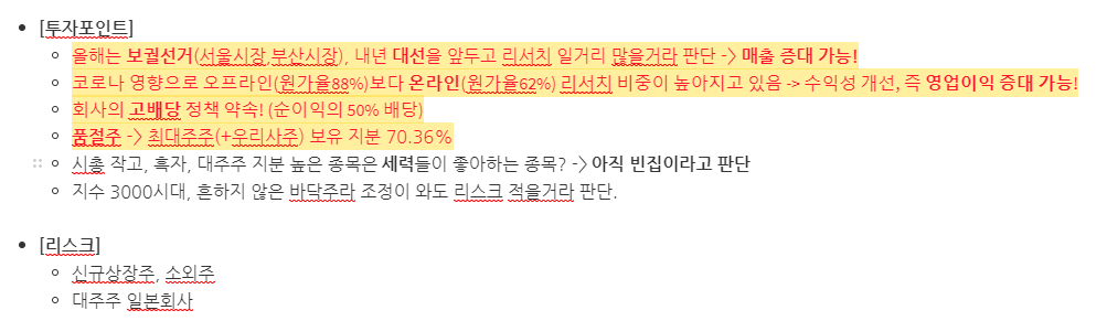 | 구분 | 투자아이디어 |