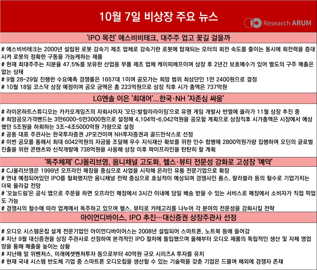 제목 2022년 10월 7일 비상장 주요 뉴스