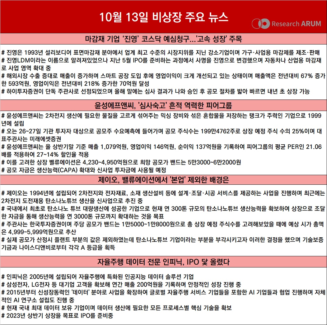제목 2022년 10월 13일 비상장 주요 뉴스