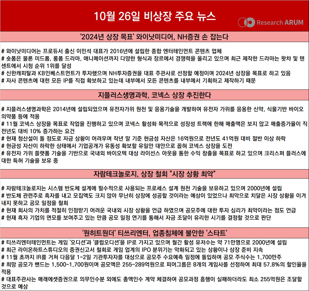 제목 2022년 10월 26일 비상장 주요 뉴스