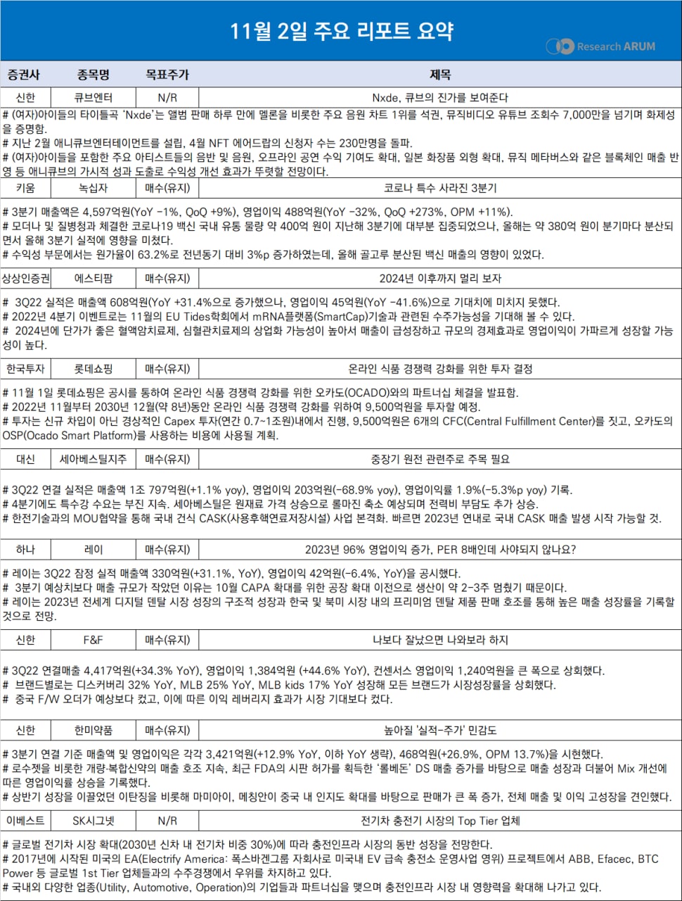 제목 2022년 11월 2일 주요 리포트 요약
