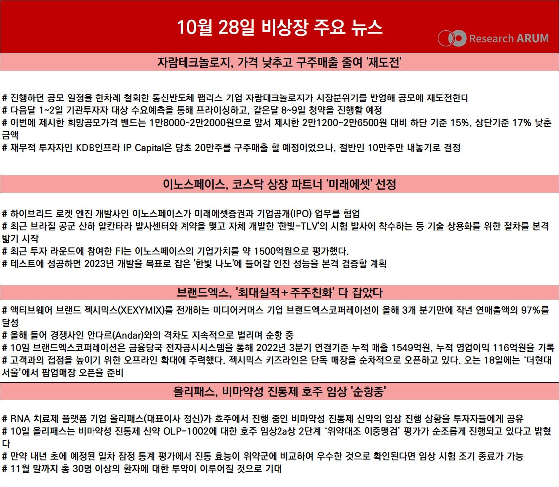 제목 2022년 11월 09일 비상장 주요 뉴스