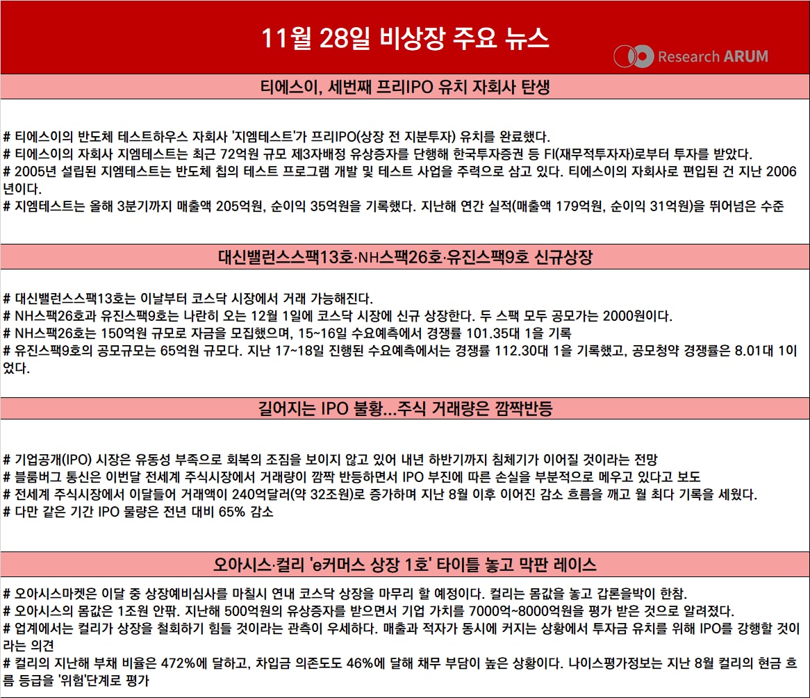 제목 2022년 11월 28일 비상장 주요 뉴스