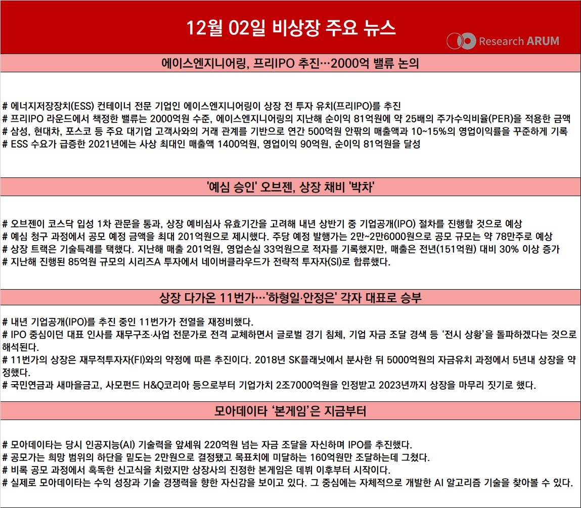 제목 2022년 12월 02일 비상장 주요 뉴스
