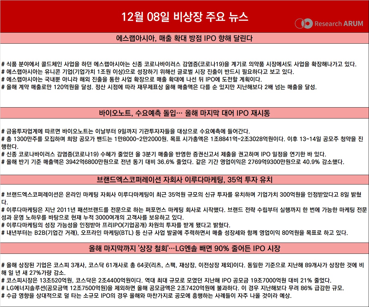 제목 2022년 12월 08일 비상장 주요 뉴스