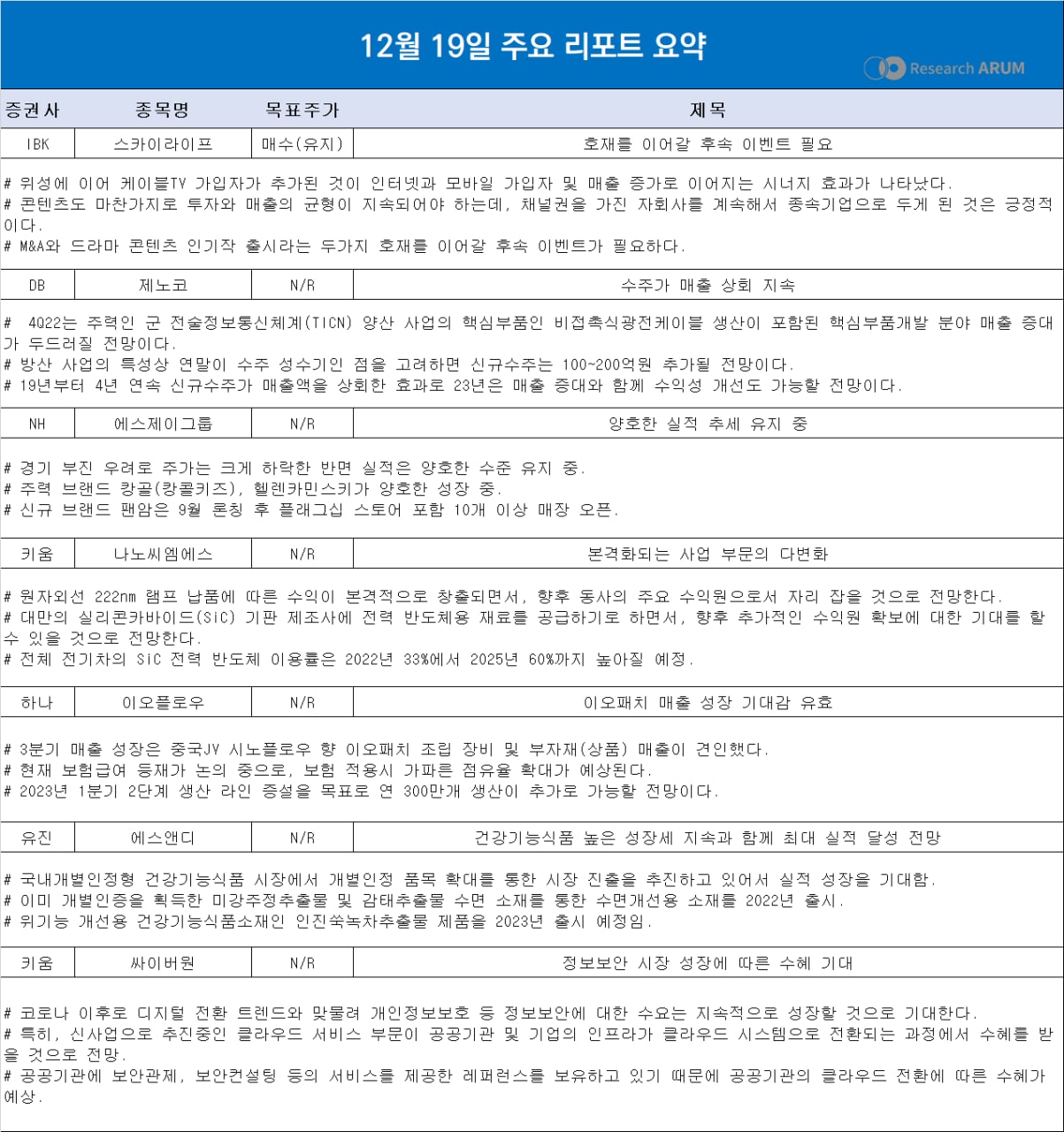 제목 2022년 12월 19일 주요 리포트 요약