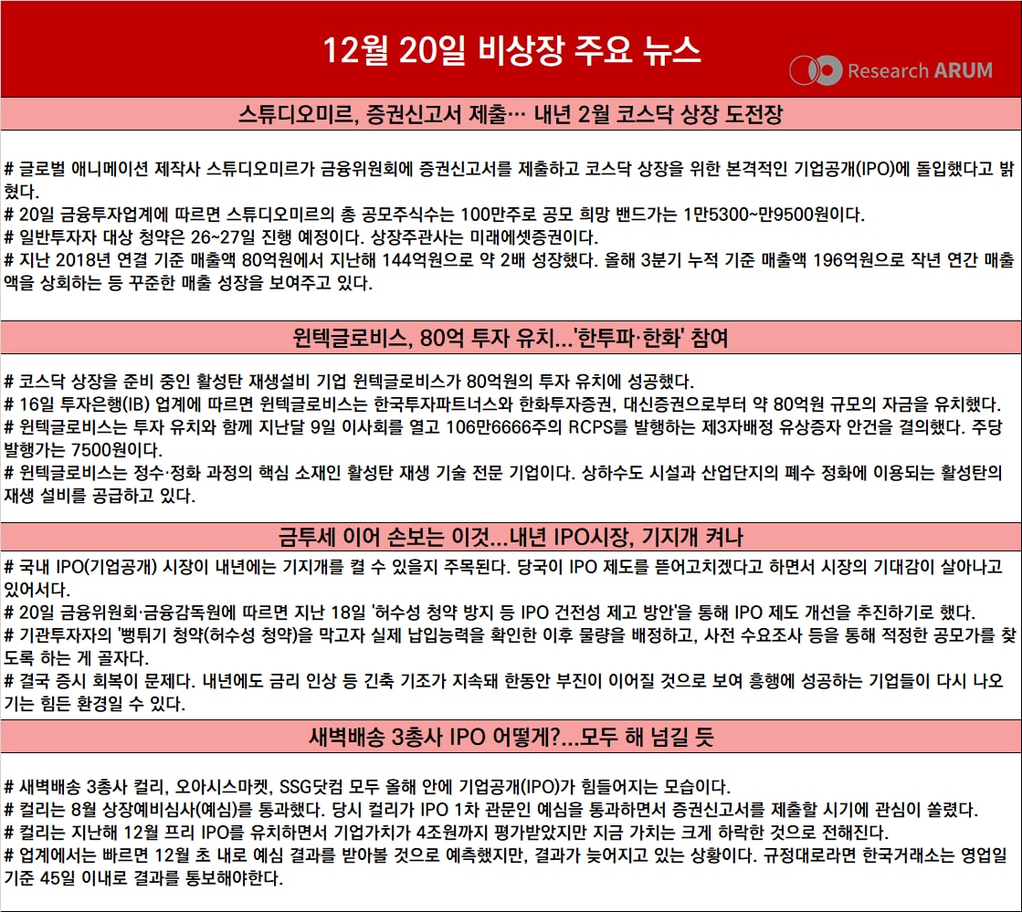 제목 2022년 12월 20일 비상장 주요 뉴스