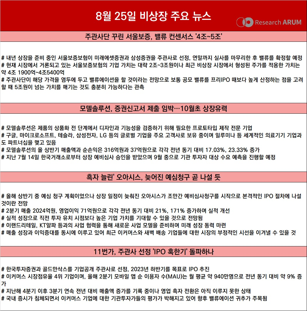 제목 2022년 8월 25일 비상장 주요 뉴스