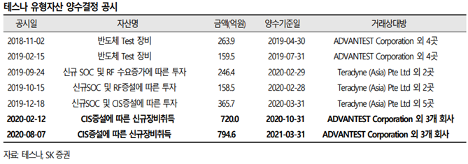 (자료 : 테스나, SK증권)