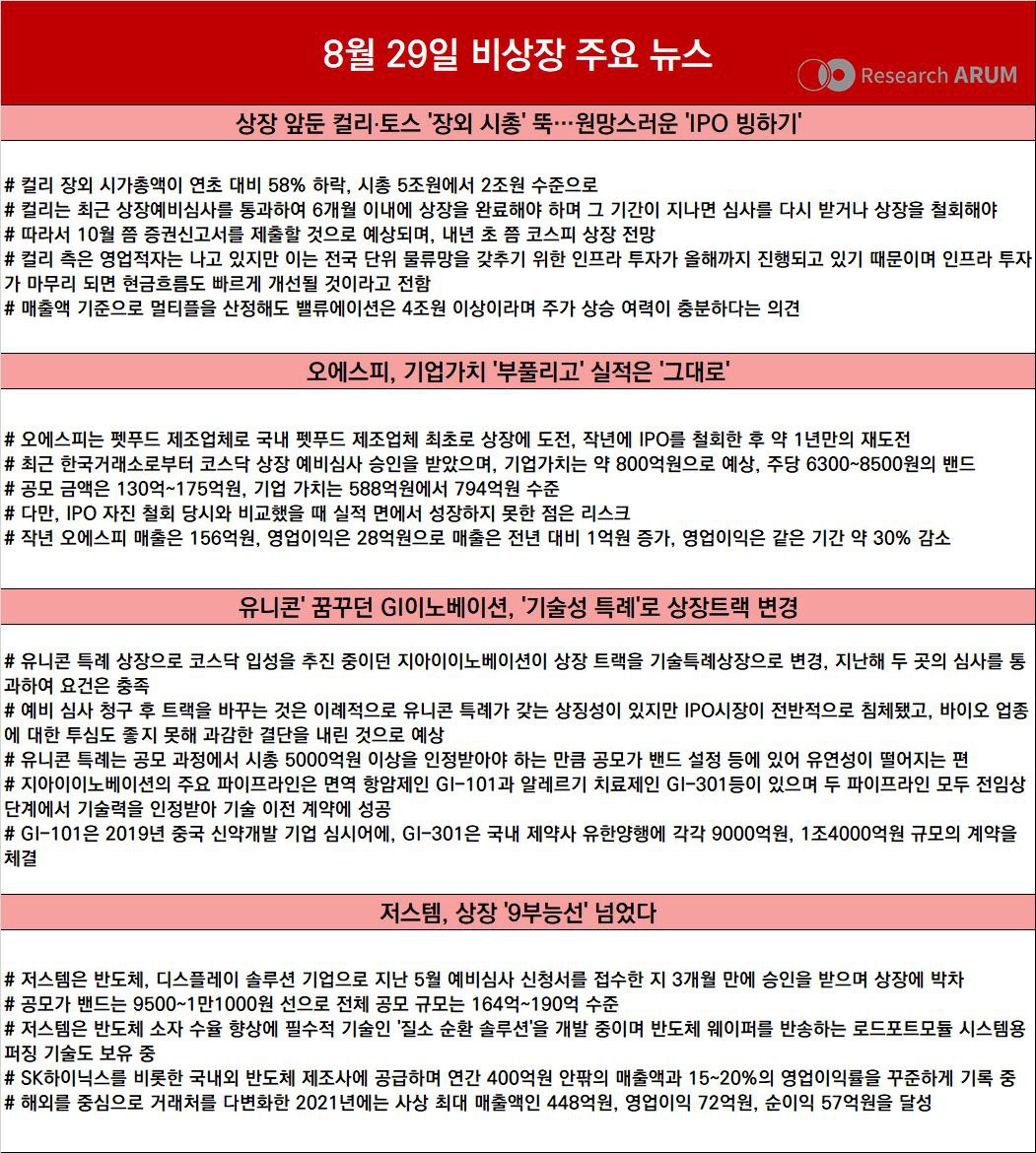 제목 2022년 8월 29일 비상장 주요 뉴스