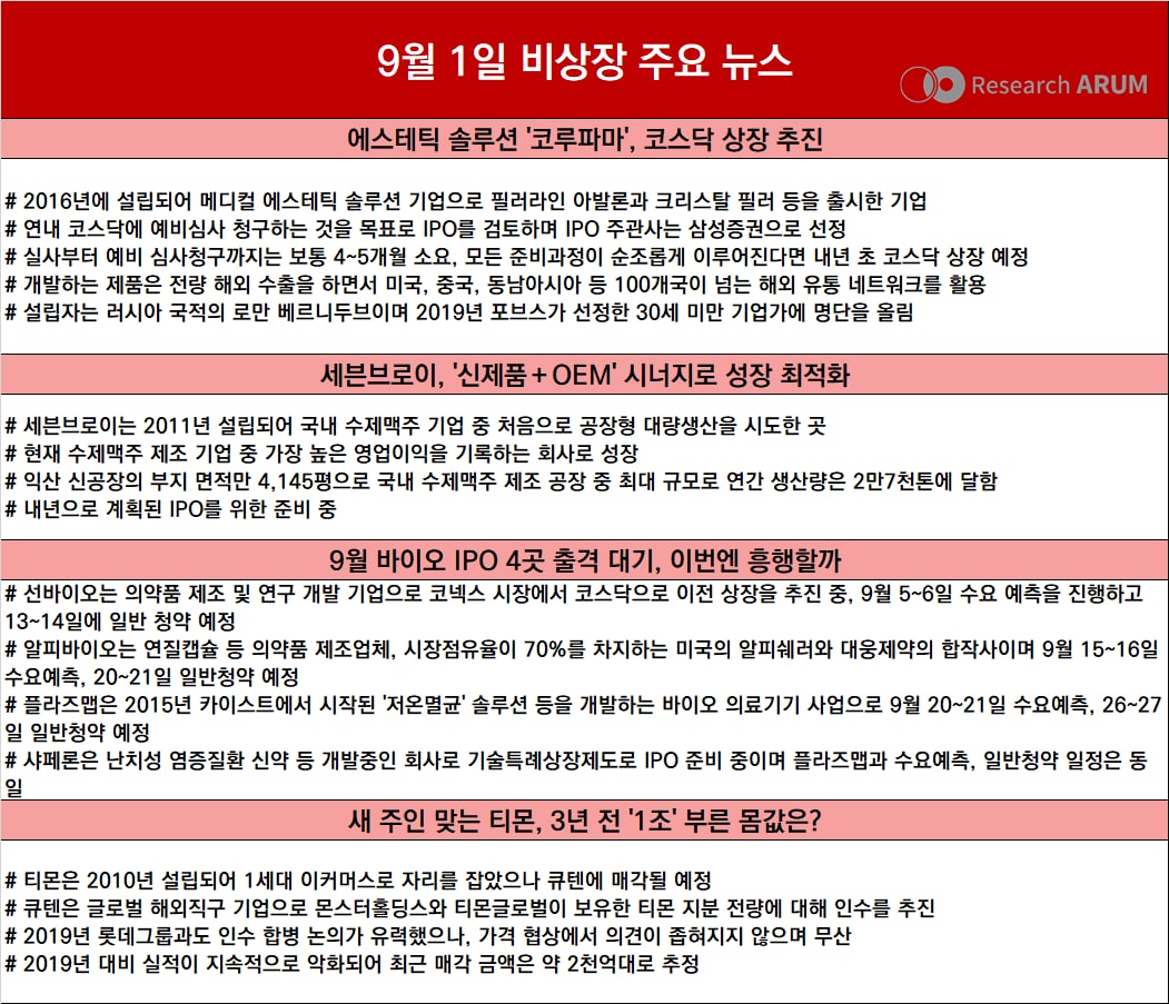 제목 2022년 9월 1일 비상장 주요 뉴스