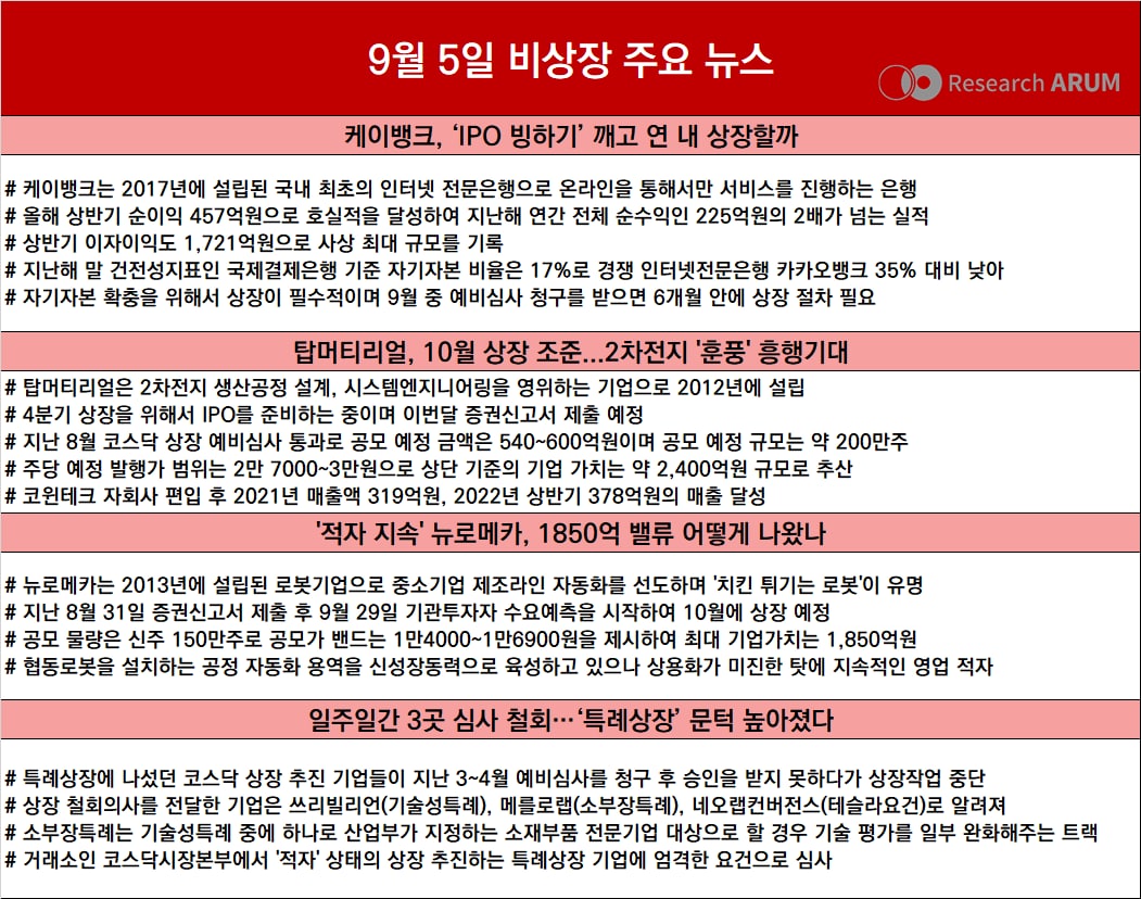 제목 2022년 9월 5일 비상장 주요 뉴스