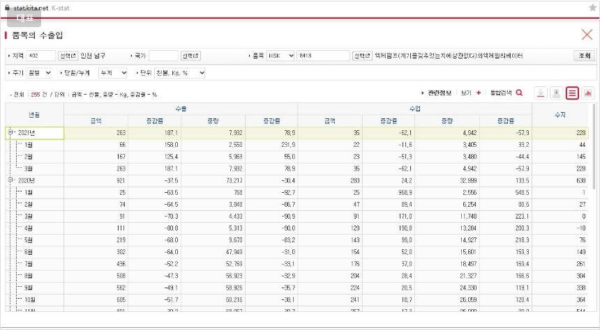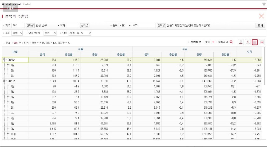 ** hs코드 4자리로 큰 틀인 모터와 펌프를 잡았고, 인천 남구 전체를 기준으로 하여 세부적인 내용과 차이는 있음